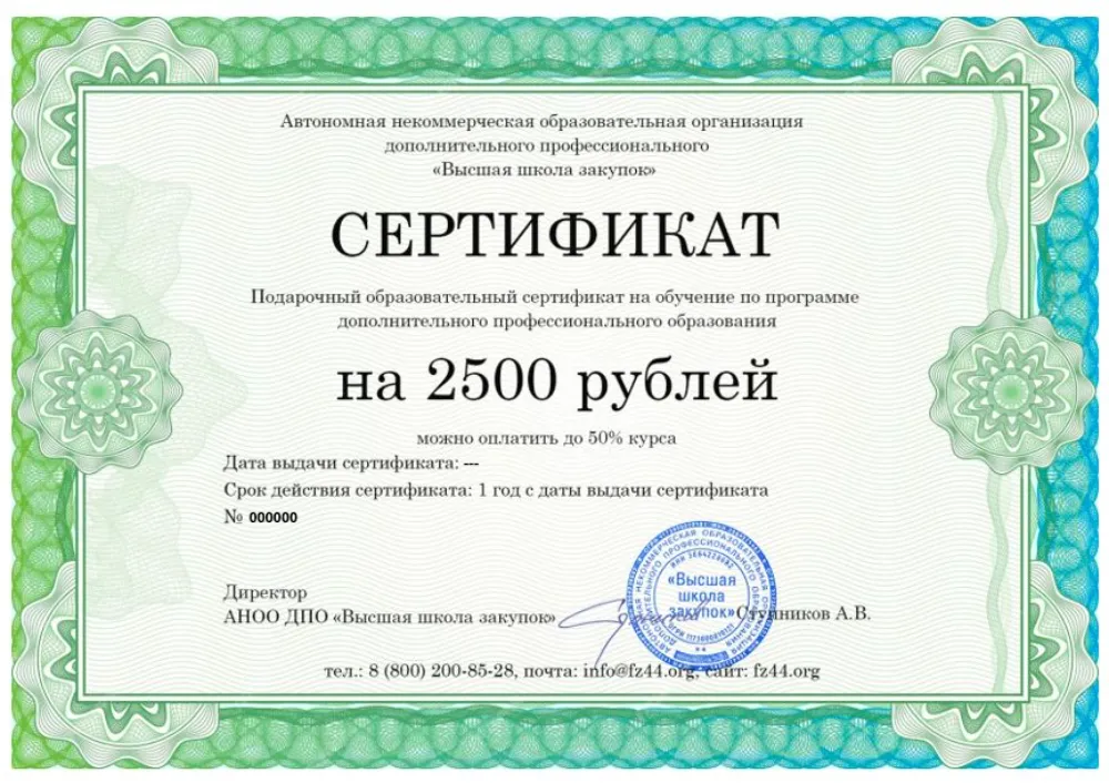 Вы получаете официальное удостоверение о повышении квалификации. Высшая школа закупок (fz44.org) в обязательном порядке вносит сведения об обучении в Тамбове в реестр ФИС ФРДО, подтверждая легитимность состава вашей комиссии.